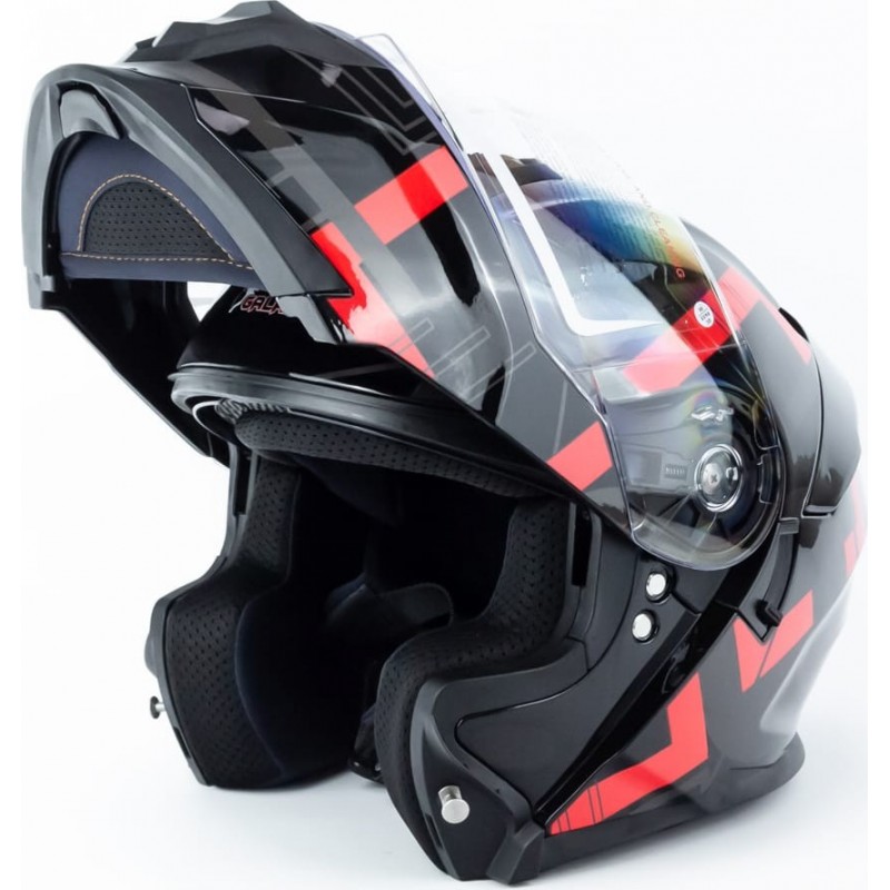 Шолом модуляр з відкидним підборіддям (стандарт DOT), висувні окуляри GLX-912 L (59-60см), чорно-червоний GALAXY