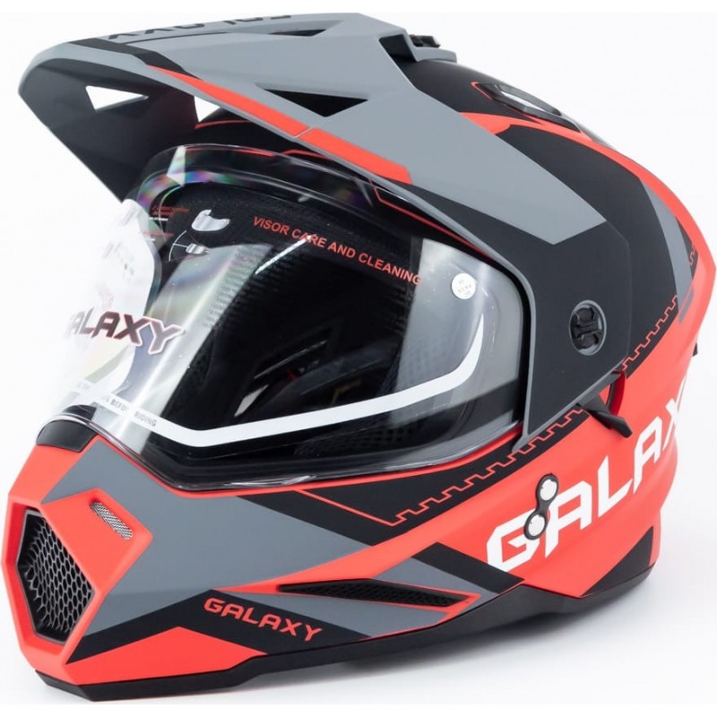 Шолом кросовий з візором (стандарт DOT), висувні окуляри GLX-802 M (57-58см), чорно-червоний мат GALAXY