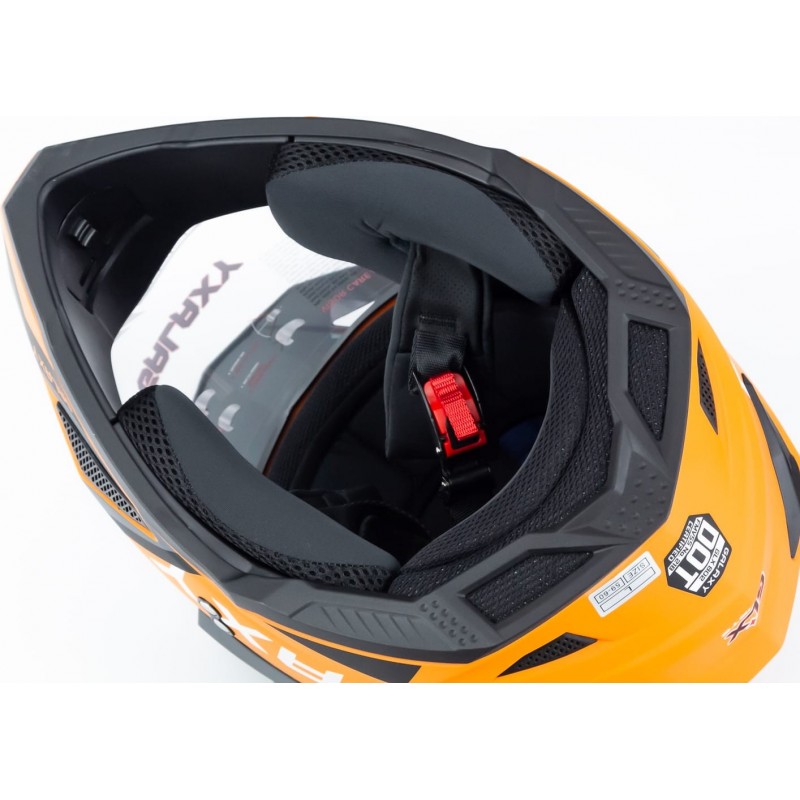 Шолом кросовий з візором (стандарт DOT), висувні окуляри GLX-802 L (59-60см), чорно-помаранчевий мат GALAXY