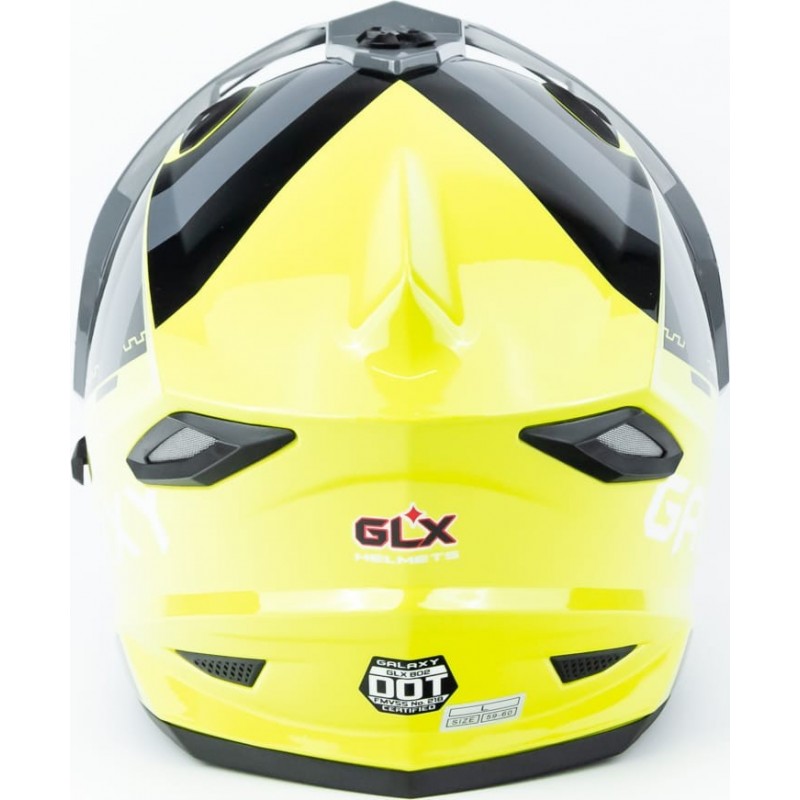 Шолом кросовий з візором (стандарт DOT), висувні окуляри GLX-802 L (59-60см), чорно-салатовий GALAXY