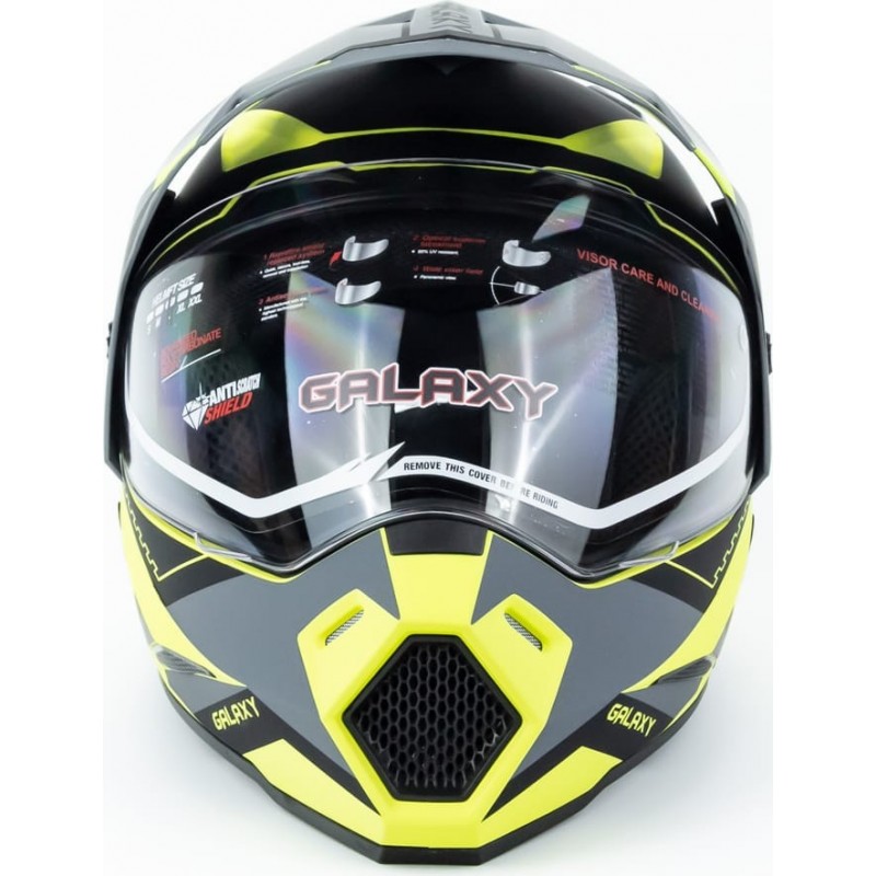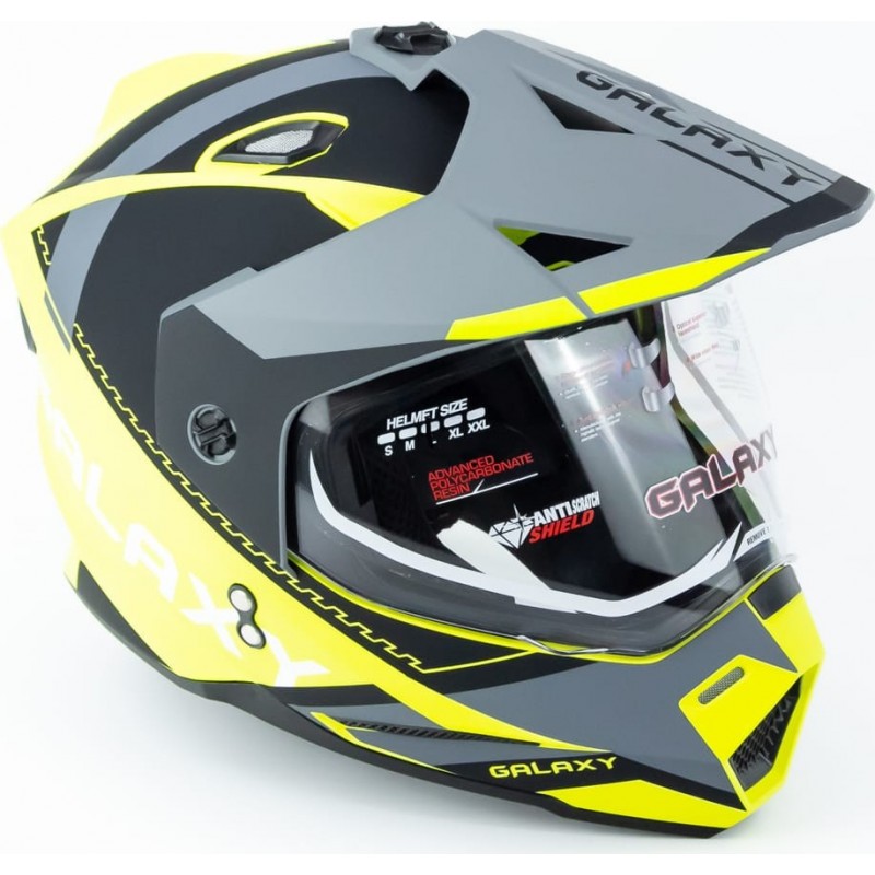 Шолом кросовий з візором (стандарт DOT), висувні окуляри GLX-802 L (59-60см), чорно-салатовий мат GALAXY