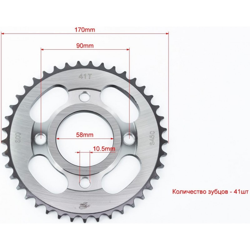 Зірка задня WY125-428-41T-d-58/ 4отв.*90мм "гартована" (ZS125J спиці) Scorpion