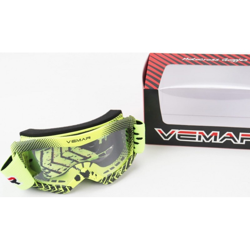 Очки детские кроссовые/эндуро/АТV, салатово-чёрные (прозрачное стекло), VM-1018A VEMAR