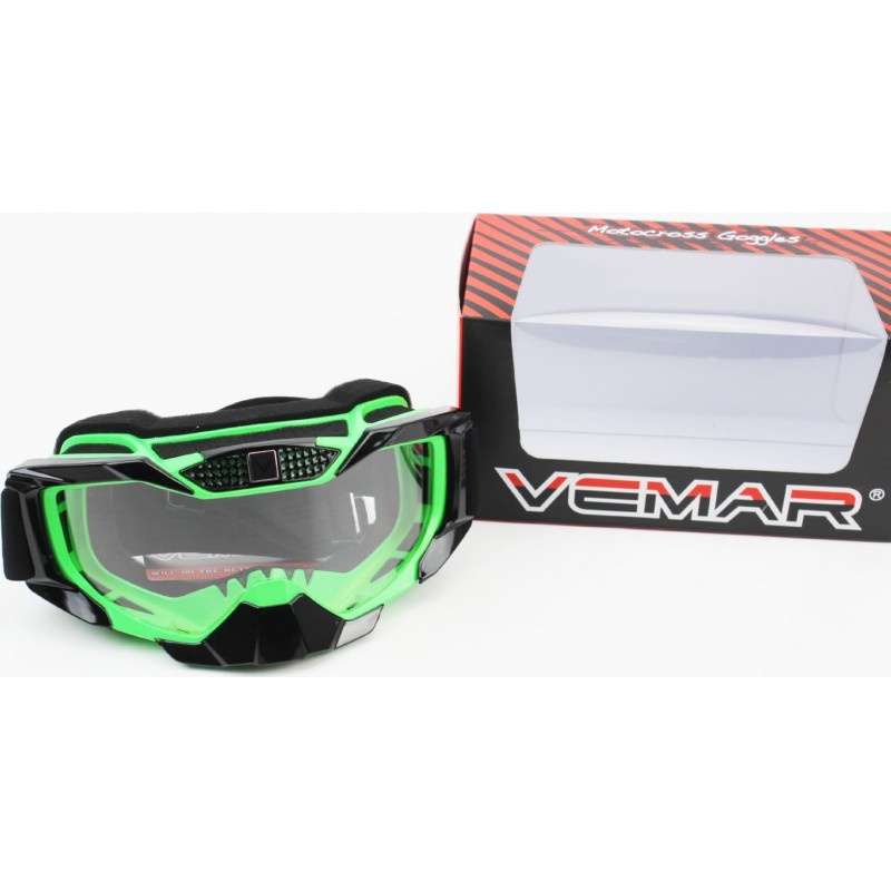 Очки кроссовые/эндуро/АТV, зелёно-чёрные (прозрачное стекло), MJ-1015 VEMAR