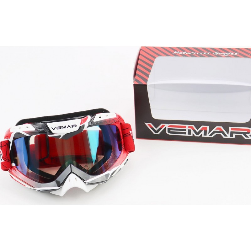 Очки кроссовые/эндуро/АТV, бело-красно-чёрные (зеркальное стекло), VM-1016C VEMAR