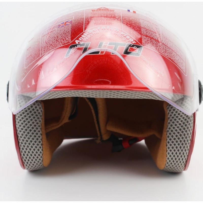 Шлем детский открытый Т68, красный с бело-красным рисунком RUITO