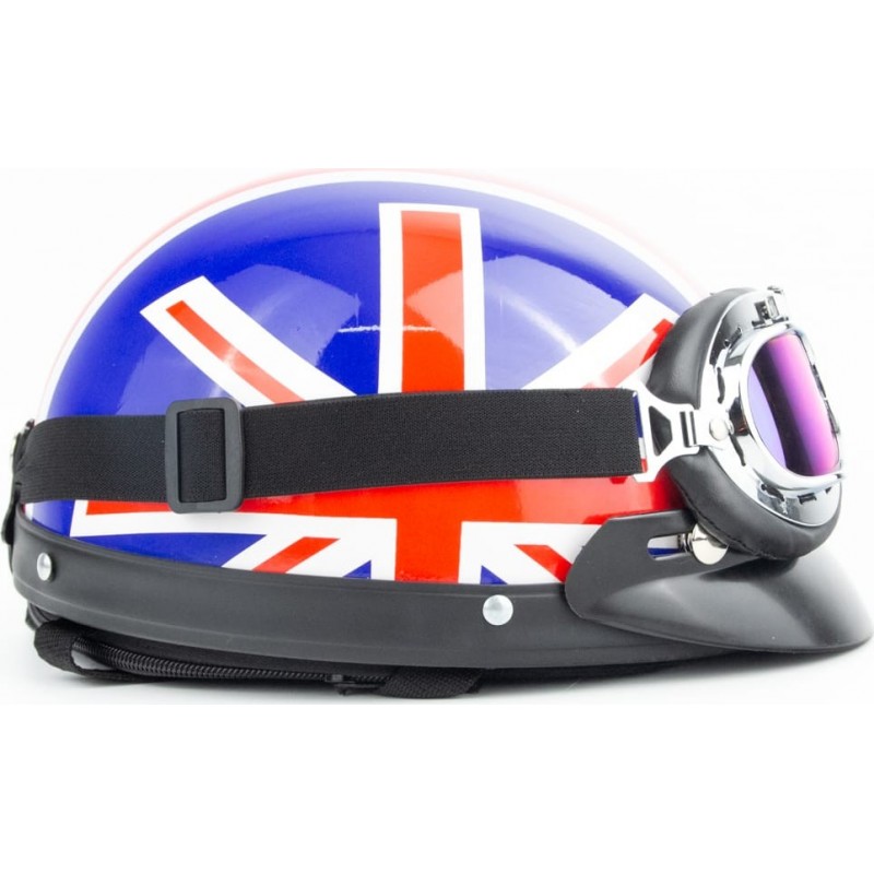 Шлем-каска X8 со съёмным козырьком+очки, синий с красно-белым рисунком "United Kingdom"