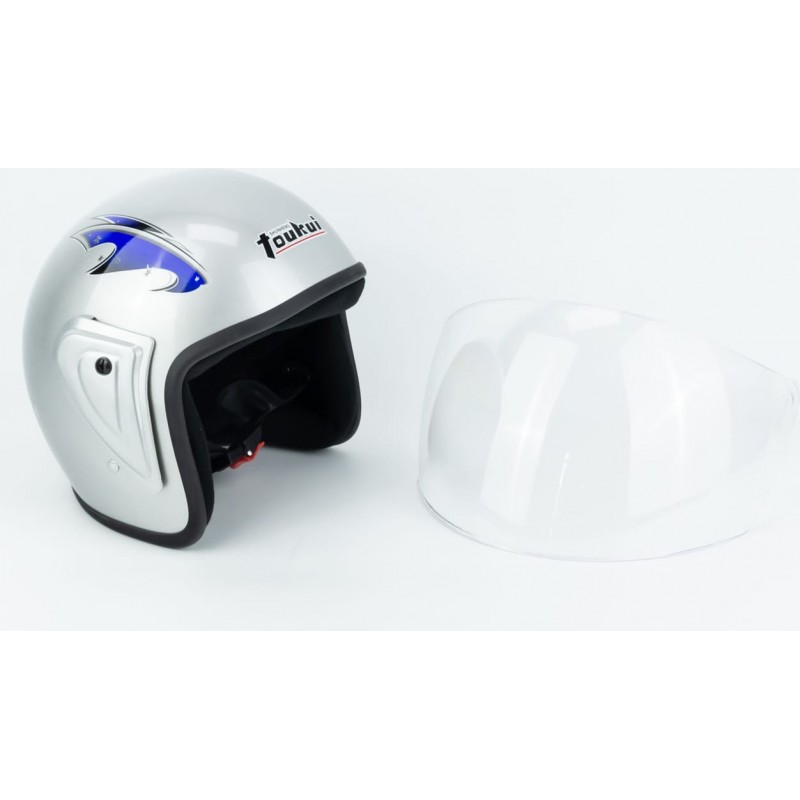 Шлем открытый HK-215, CЕРЫЙ с рисунком ( отличия рисунков, дефекты покраски) Toukui