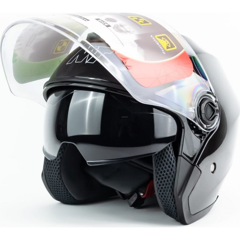 Шлем открытый+очки МТ 858 S, чёрный глянец MT