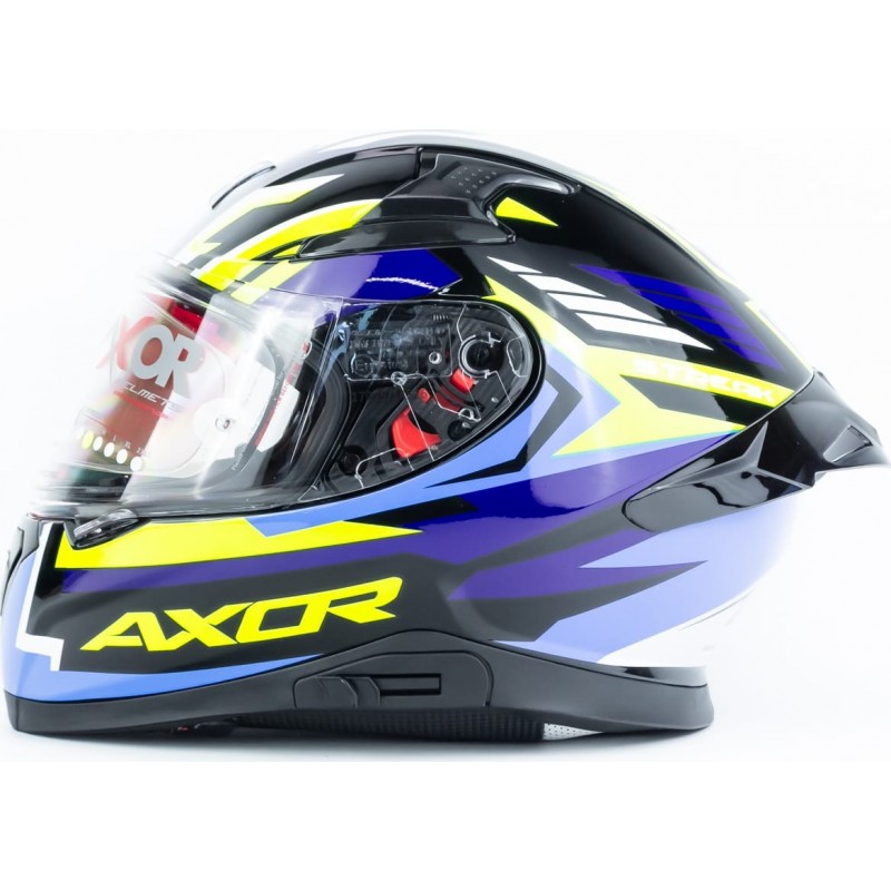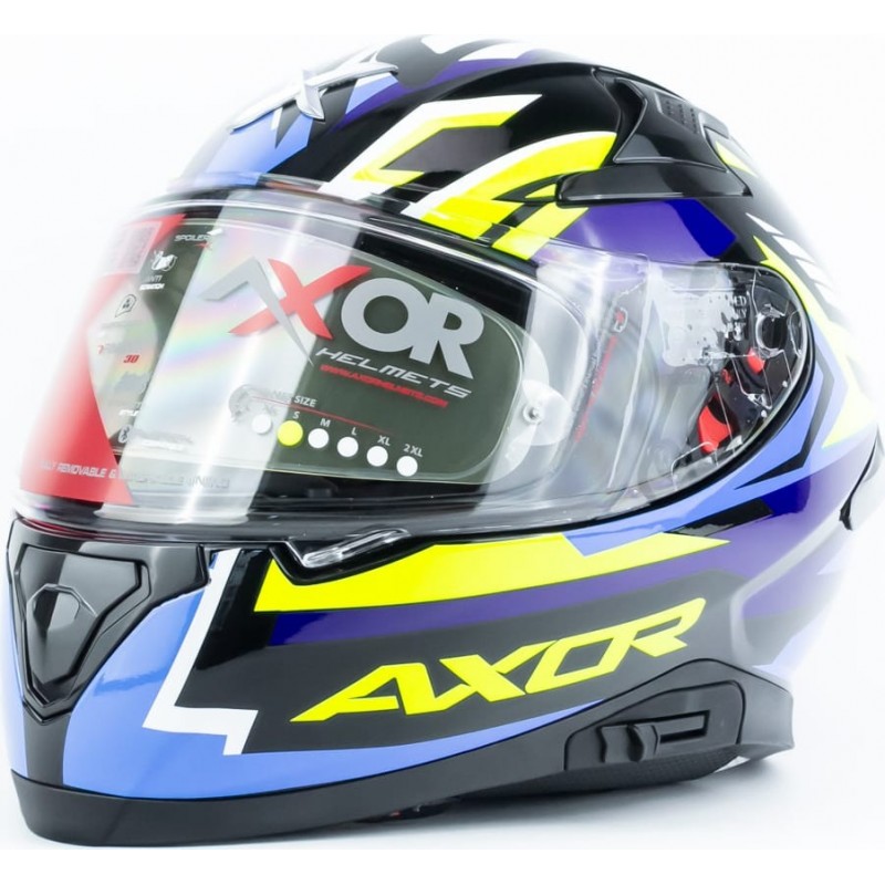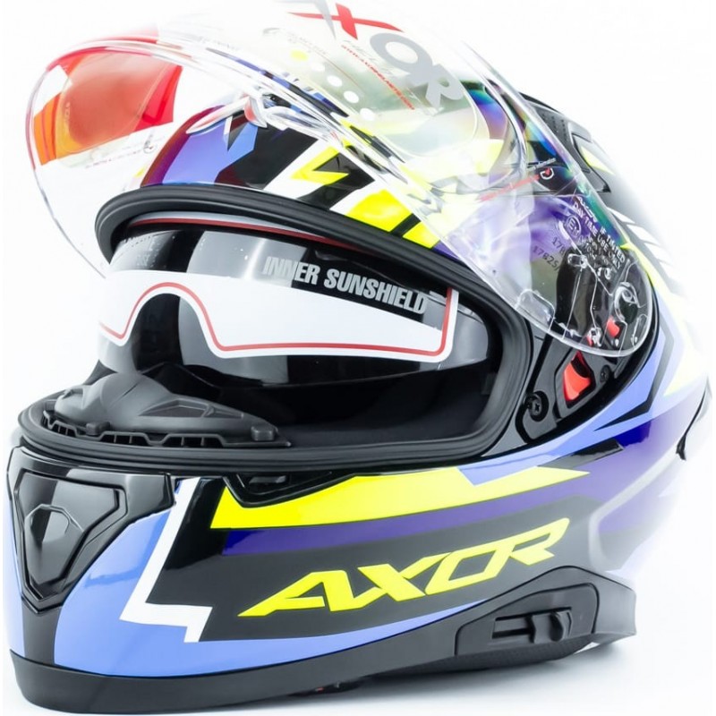 Шолом інтеграл APEX STREAK з піноком (стандарт DOT/ECE), висувні сонцезахисні окуляри S (55-56см), чорно-синьо-салатовий AXOR