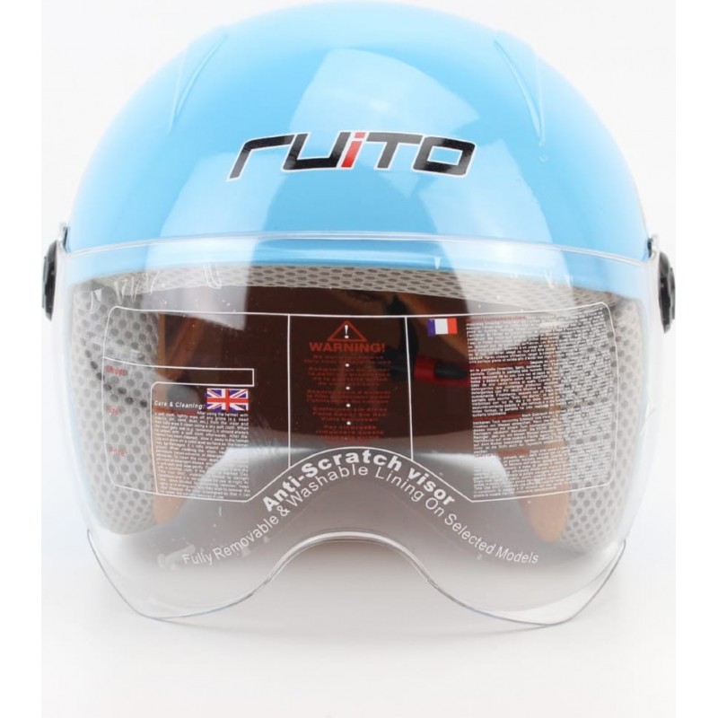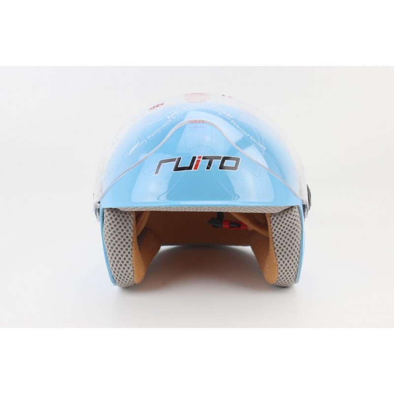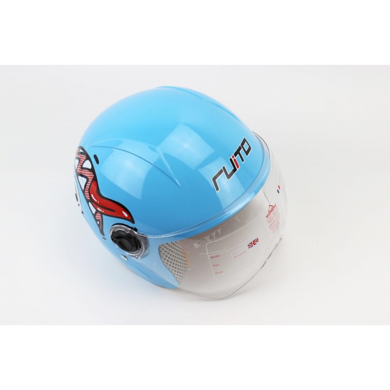 Шолом дитячий відкритий Т68, синій з червоно-біло-чорним малюнком RUITO