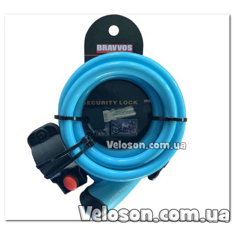 Замок BRAVVOS LOC-065-110 на ключі із сталевим тросом 12mmX1500mm блакитний