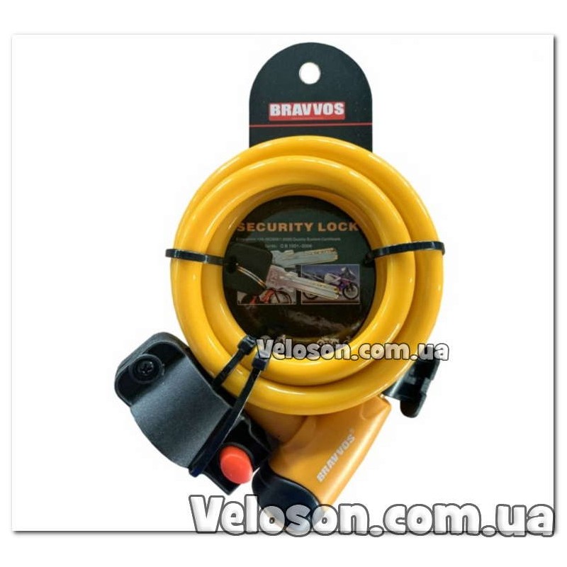 Замок BRAVVOS LOC-065-110 на ключі зі сталевим тросом 12mmX1500mm помаранчевий