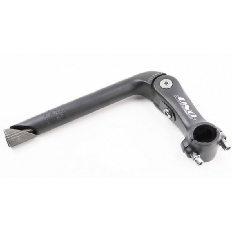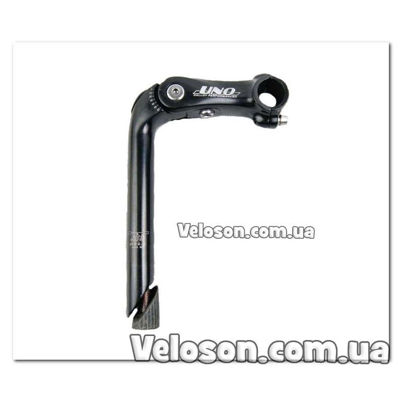 UNO, винос Регульваний AL-828 1", ЧОРНИЙ, під різьбову 1" вилку, AL , діа. штока: 22.2мм (L:180мм), довж.: 110мм, діа.керма: 25,4мм (2 болта), кут нахилу: 0-60*, з лого