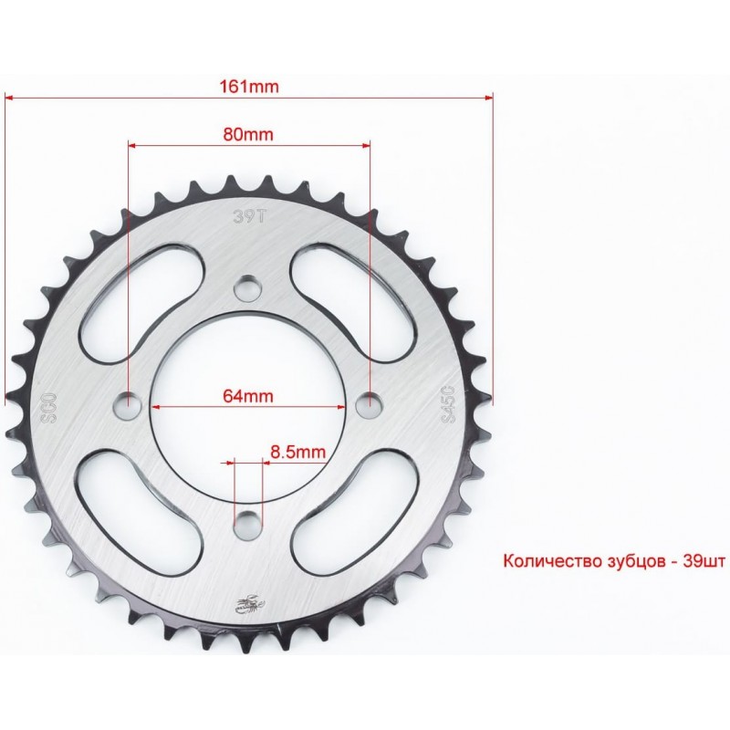Зірка задня RS125-428-39T-d-64/ 4отв.*80мм "гартована" (V200N) Scorpion