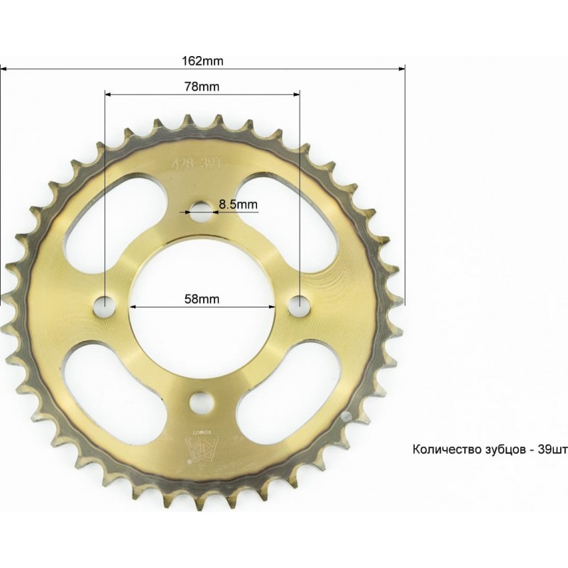 Зірка задня WY125-428-39T-d-58/ 4отв.*78мм "гартована" KDMOT