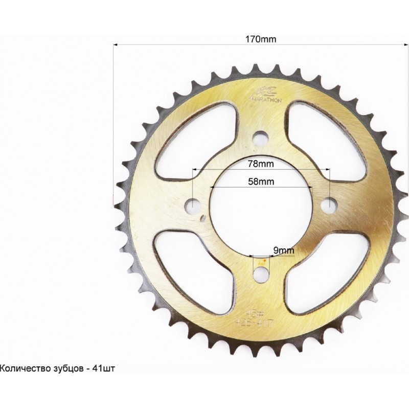 Зірка задня JD125-428-41Т-d-58/ 4отв.*78мм "гартована" MARATHON