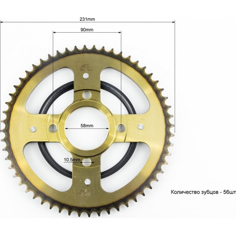 Зірка задня GLPRO-428-56T-d-58/ 4отв.*90мм "гартована" (V200R) MARATHON