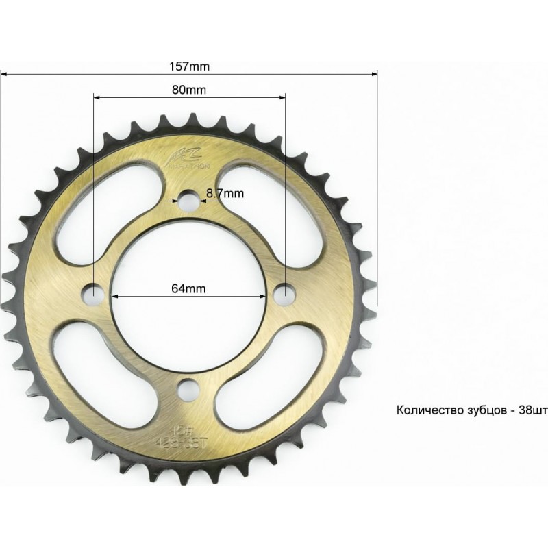 Зірка задня RS125-428-38T-d-64/ 4отв.*80мм "гартована" (V200N) MARATHON
