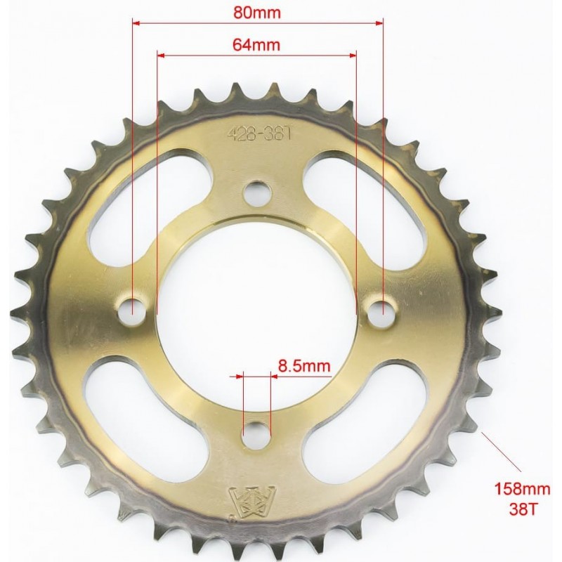 Зірка задня RS125-428-38T-d-64/ 4отв.*80мм "гартована" (V200N) KDMOT