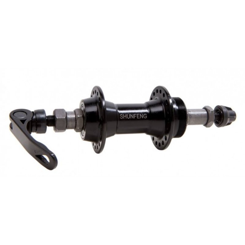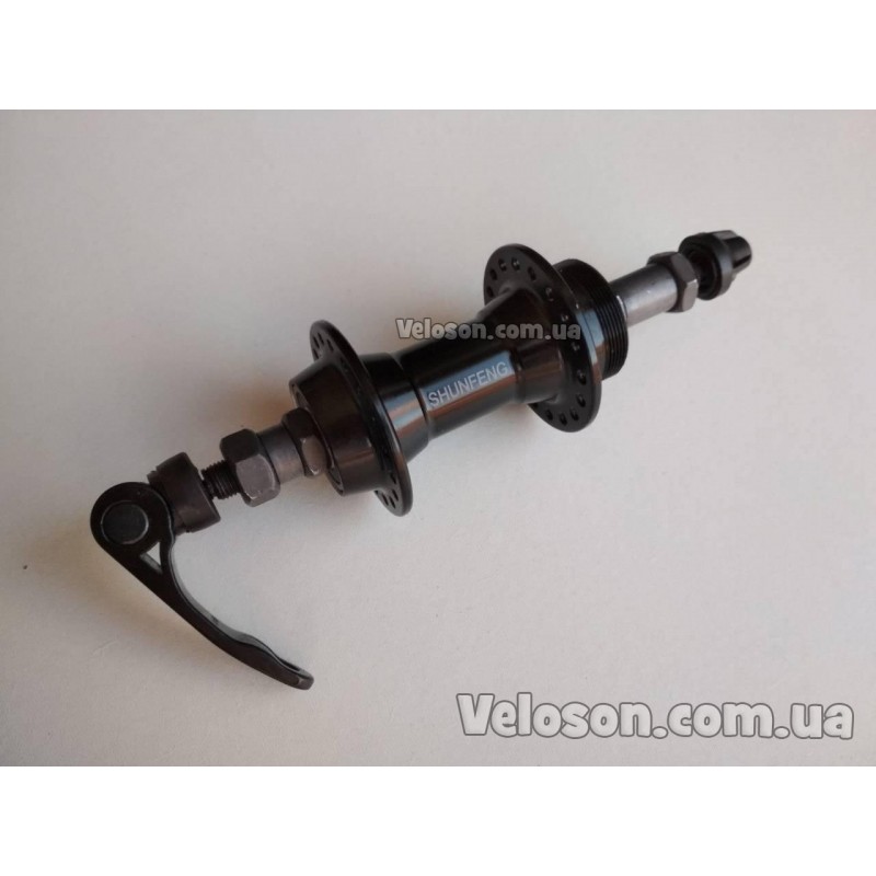 Задня велосипедна втулка на промислових підшипниках під тріскачку та гальма обідній (V-brake). Алюмінієвий корпус і промисл роблять цю втулку дуже надежною та невибагливою в обслуговуванні. Підходити для тріскачок на 6-7 зірок.