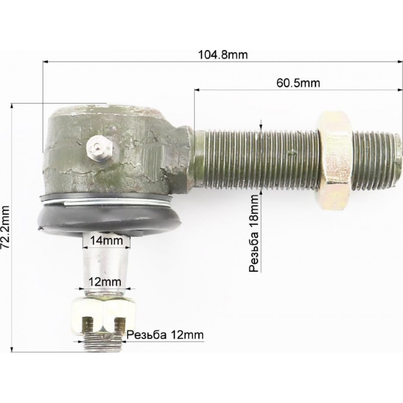 Накінечник кермовий, ліва різьба, М18, М12, конус 12-14мм, з тавотницею Xingtai 220 (160.31.019) Китай