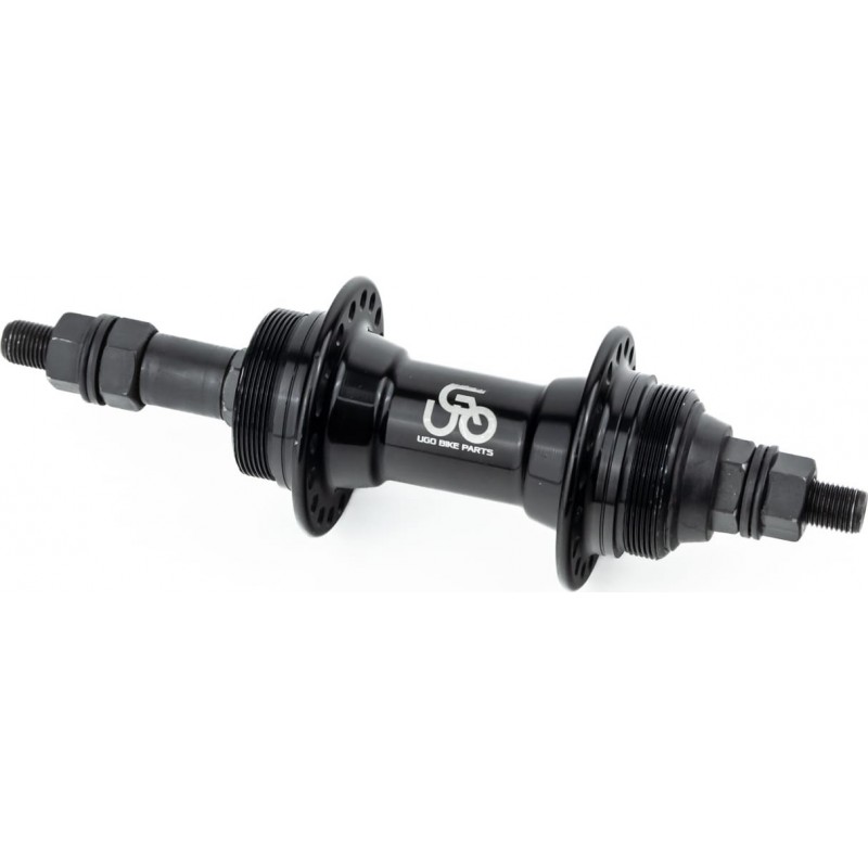 Втулка задня MTB алюмінієва 14Gx36H під вільнобіг, Disk-brake (різьба), 2 пром-підшипники 6200 2RS, гайка, чорна U-B23RB UGO