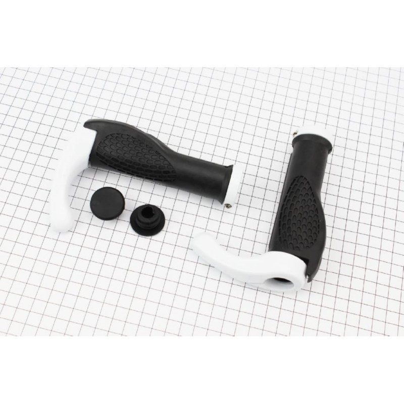 Ручки керма 140мм з затискачем Lock-On, ергономічні з ріжками, чорно-білі Китай