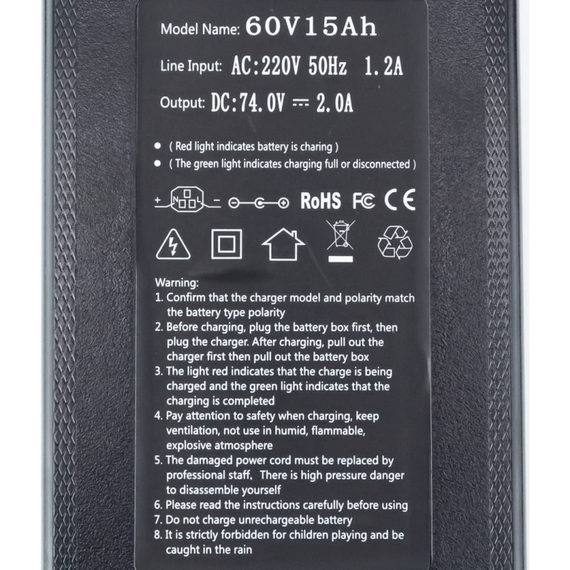 Зарядний пристрій 60V 15Ah-2.0А (штекер T-type C15) з охолодженням, E-BIKE Китай