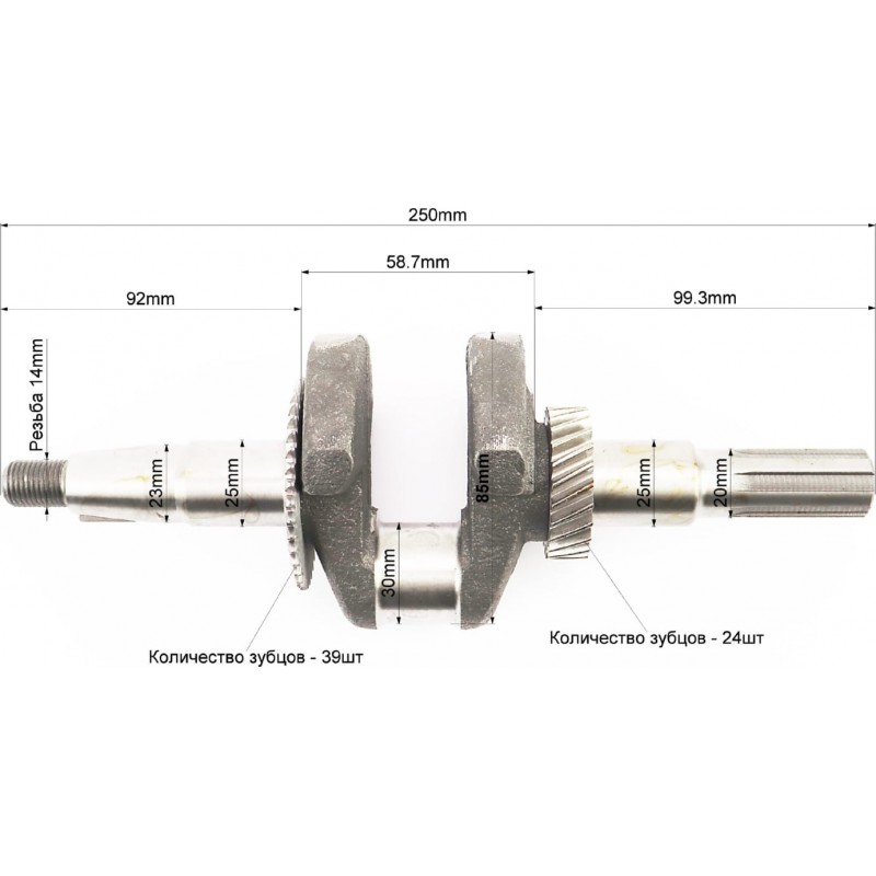 Колінвал 168F/170F (D шийки-30мм, H-85мм, L-250мм) під шліць D-20мм Китай