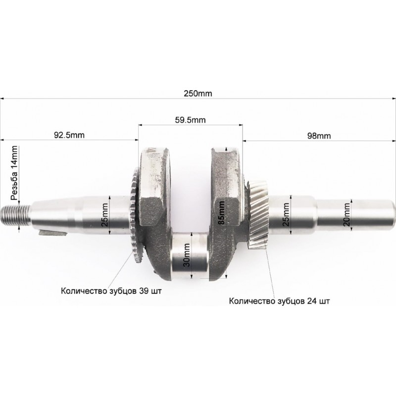 Колінвал 168F/170F (D шийки-30мм, H-85мм, L-250мм) під шпонку D-20мм TATA