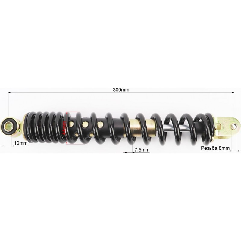 Амортизатор задній GY6/Honda-300мм*D-41мм (втулка 10мм / вилка 8мм), чорний Formula