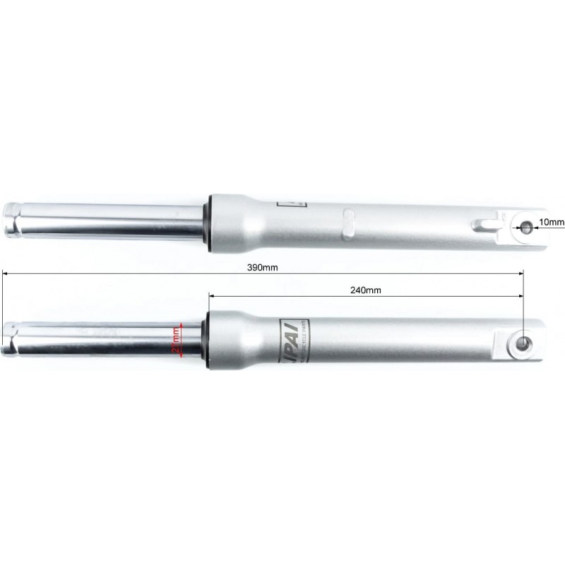 Вилка передня (перо) ліве, праве к-кт 2шт Honda DIO, 390мм (під бараб. гальм.) якісні, сірі LIPAI