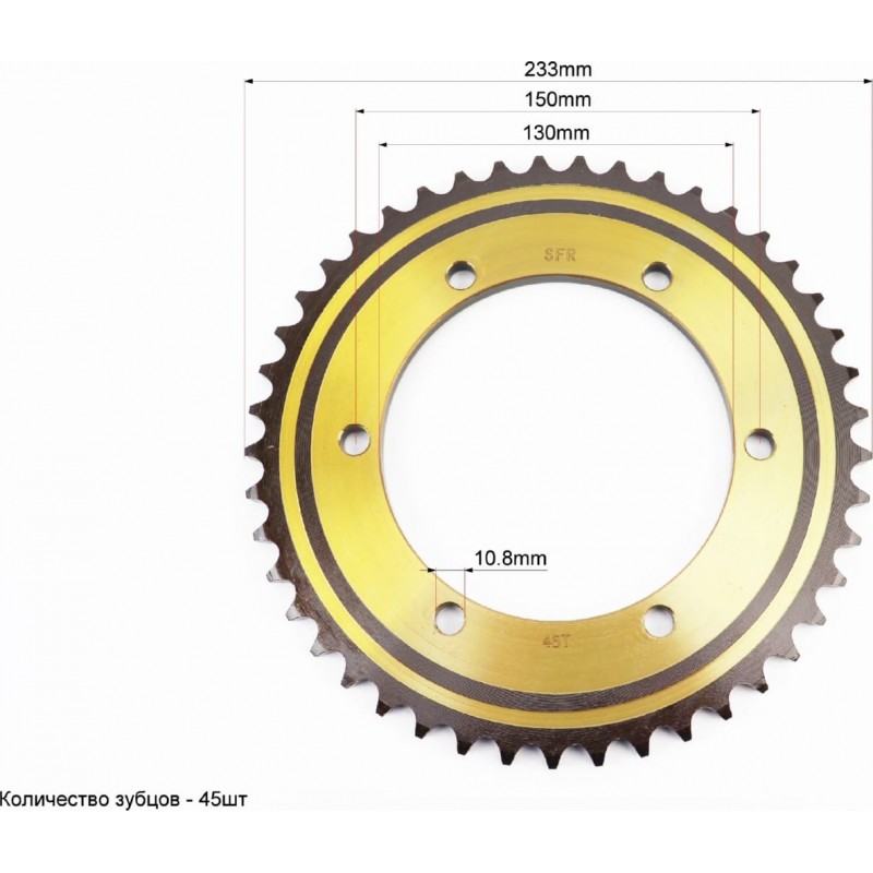 Зірка задня 530-45T-d-130/ 6отв.*150мм "гартована", LIFAN SFR