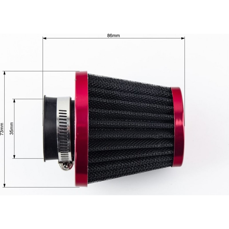 Фільтр повітряний нульовий 35мм прямий "конус", червоний, чорна сітка (великий) TATA
