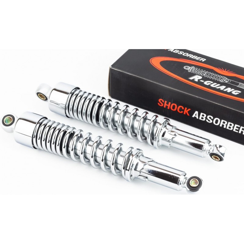 Амортизатор задній JH/CB/CG-345мм*d58мм (втулка 12мм / втулка 10мм) зі склянкою регул., хром к-кт 2шт R-GUANG